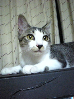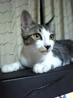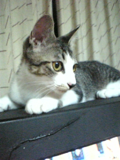 テレビの上がお気に入りのジンくん