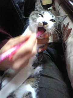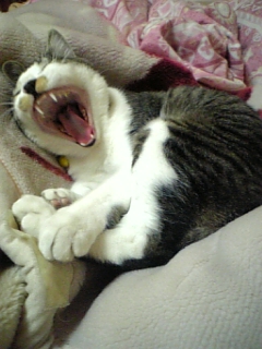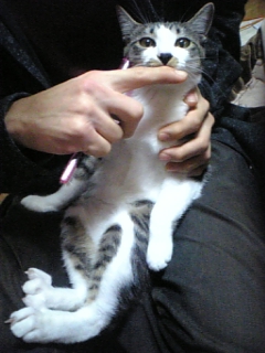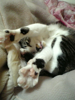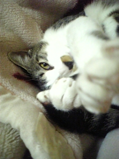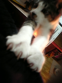 嫌がりすぎて犬みたいになった 写メの色鉛筆効果で撮ってみたり 勉強の邪魔するのが得意なんだよね 起きた う〜喰われそう どさくさに紛れてジャブを食らった!! なにそのお手て