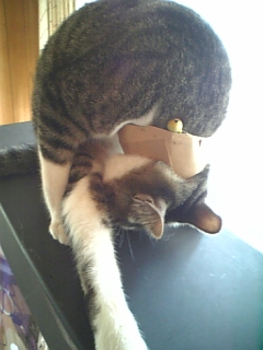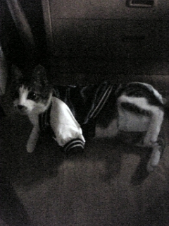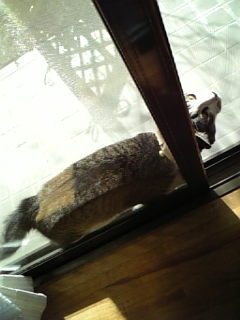 「白いあの子来ないかなー」 ガタブルしながら友達待ち ジン、火傷発覚!! エリザベスカラー失敗 newエリザベスカラー(兄貴作) これも失敗だった ジンくん何故か窓ガラスと網戸の隙間に 結局可哀相なことに…(´∀`;) 撮影会勃発 立てないジン様 逃げるジン様 「開けて」