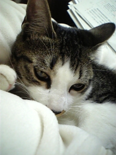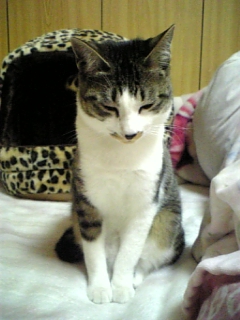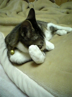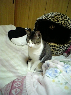 勉強の邪魔ばかりするので、ジンくん用ベッドに放り込むと